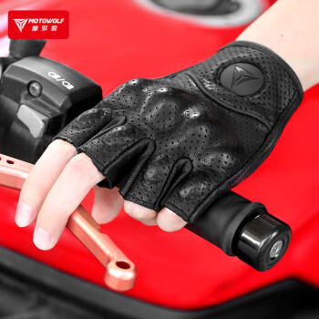 摩多狼摩托车夏季半指手套机车骑行真皮四季复古透气露指防摔骑士